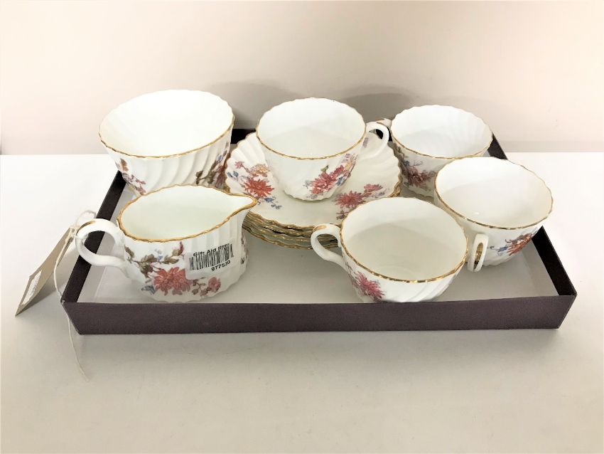 Ten pieces of antique Minton bone china with gilded detail, comprising sugar basin, milk jug, four cups and four saucers