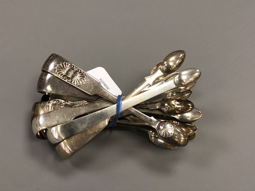 Eight pairs of Newcastle silver sugar tongs (seven Georgian and one Victorian)