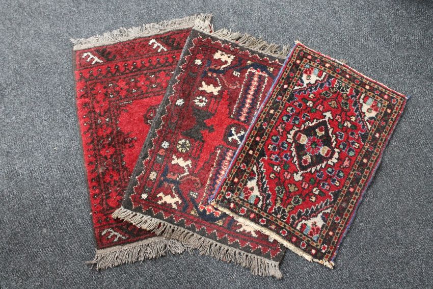 Three fringed Persian prayer rugs