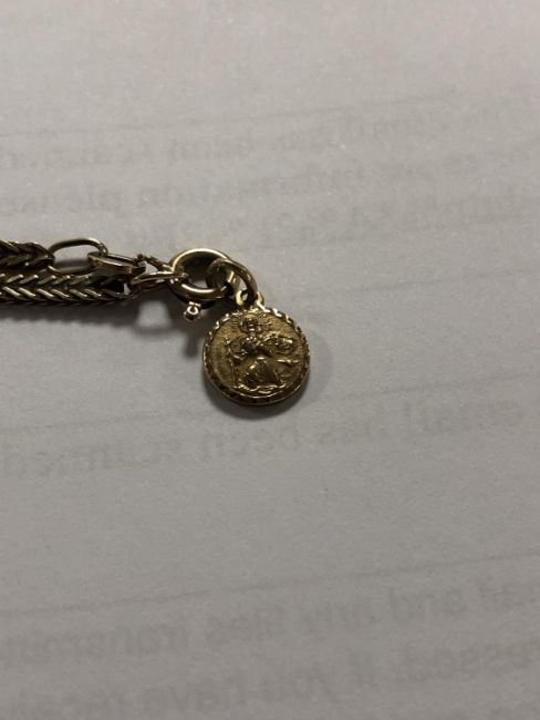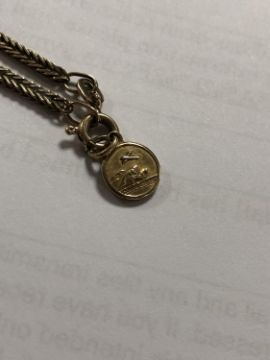 7.4g gross. Both the chain and pendant are hallmarked 9ct gold. The pendant is 8mm in diameter.