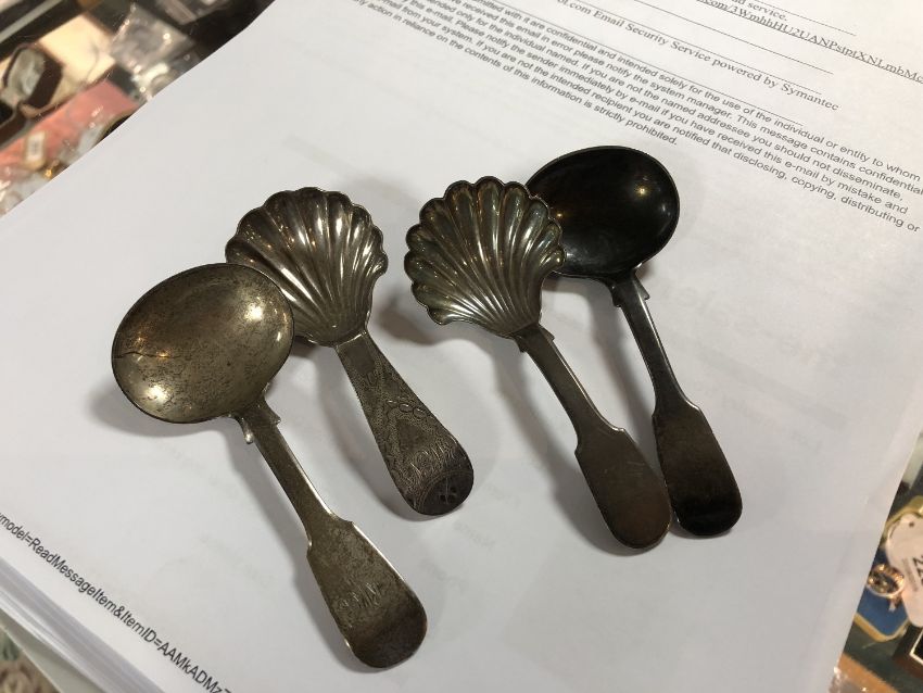 Four Georgian Newcastle silver caddy spoons