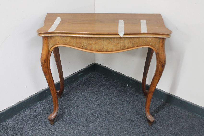 A late 19th century continental walnut turnover top tea table on cabriole legs