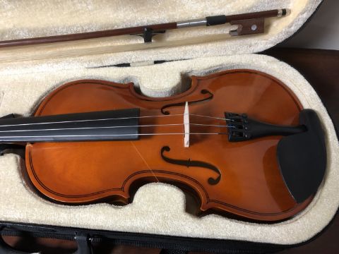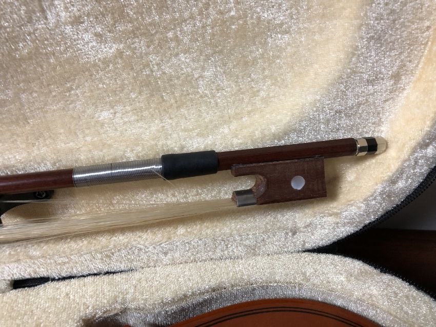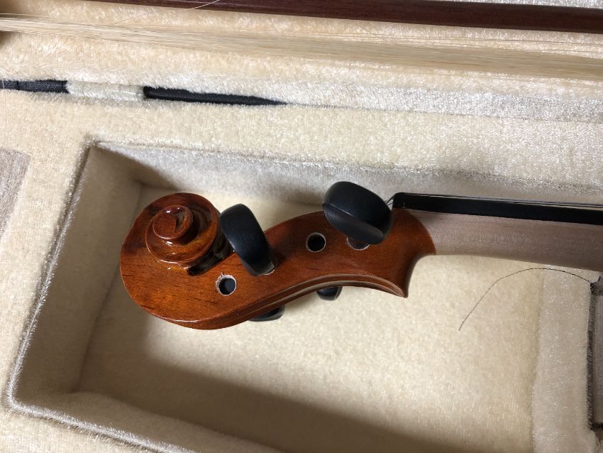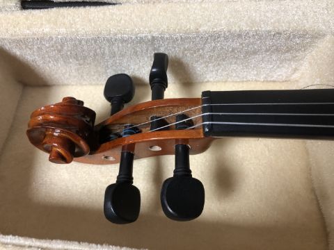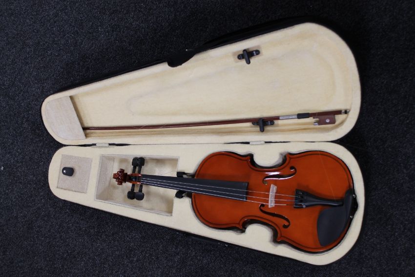 A violin and bow in a fitted carry case
