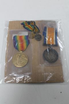 Two WWI medals on ribbons with accompanying miniature medals on ribbons : F. Newby, A.B. Royal Navy