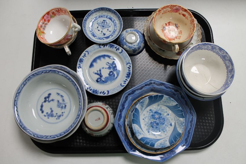 Seventeen pieces of antique and later Chinese porcelain : tea cups, finger bowls, rice bowl etc