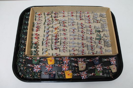 A tray of 20th century hand painted and unpainted miniature lead military figures