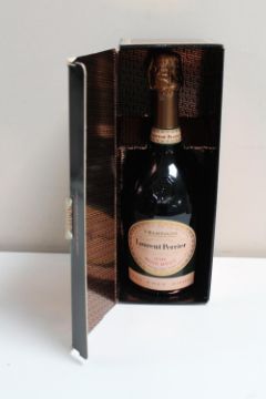 A bottle of Laurent Perrier champagne Cuvee Rose Brut, 250 ml in presentation box