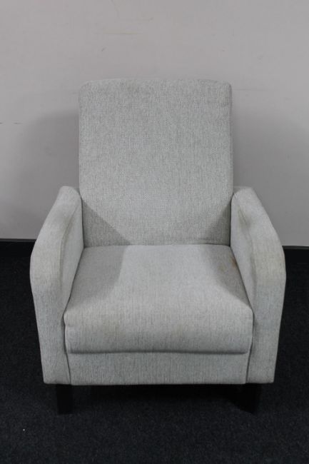 A late 20th century armchair upholstered in a beige fabric