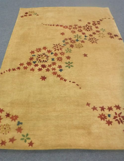 A hand-knotted rug of floral design on gold ground, 180cm by 270cm