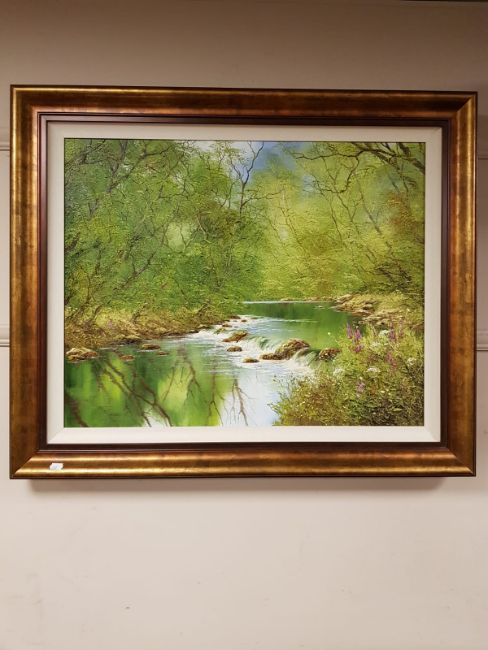 Terry Evans (Born 1943) : Woodland stream, oil on canvas, 74 cm x 59 cm, signed, framed.