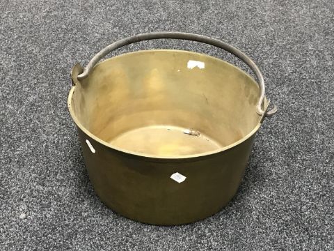An antique brass jam pan