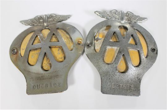 Two 1930's AA car badges