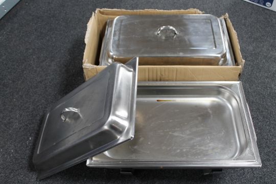 Two stainless steel single pot chafing dishes with burners