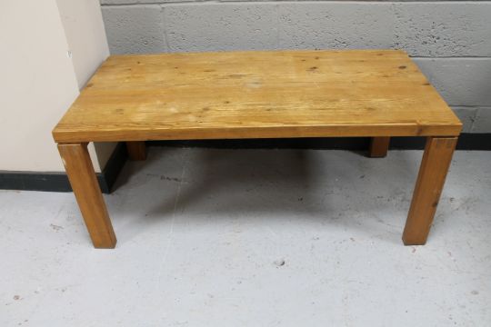 An oak three drawer chest, a mahogany chair and a pine coffee table