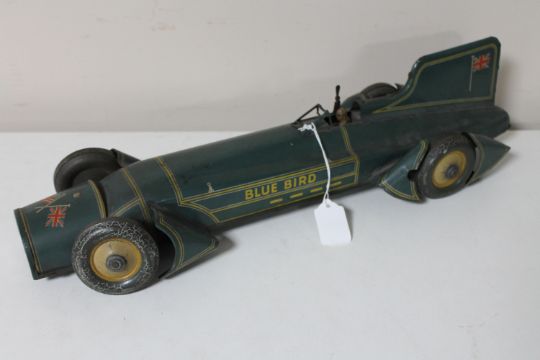 A Gunthermann tin plate clockwork motorcar - Captain Campbell's land speed record car Blue Bird, length 50 cm.