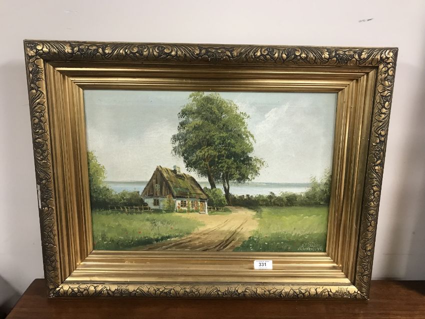A continental school oil on canvas depicting a cottage
