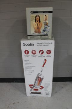 A boxed Goblin vacuum cleaner and a boxed Pro Airbrush tanning system