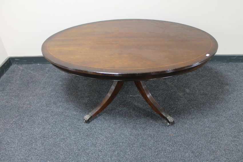 An inlaid mahogany oval coffee table