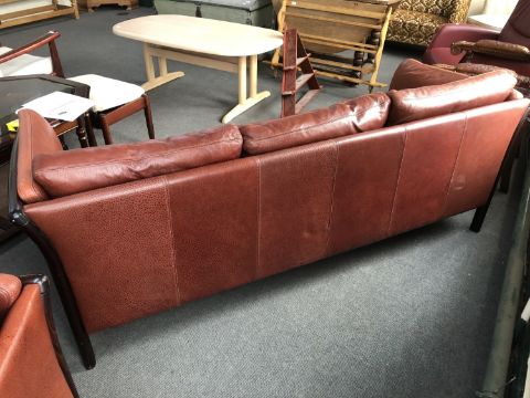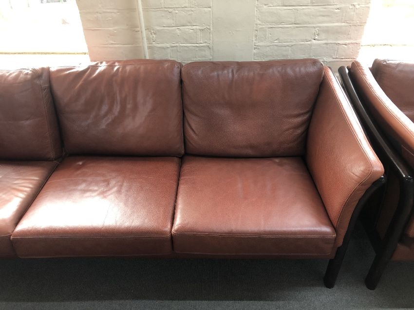 Leather showing some signs of wear. Both settees generally in very good condition with no real faults. Three seater is 204cm long, two seater is 146cm long.