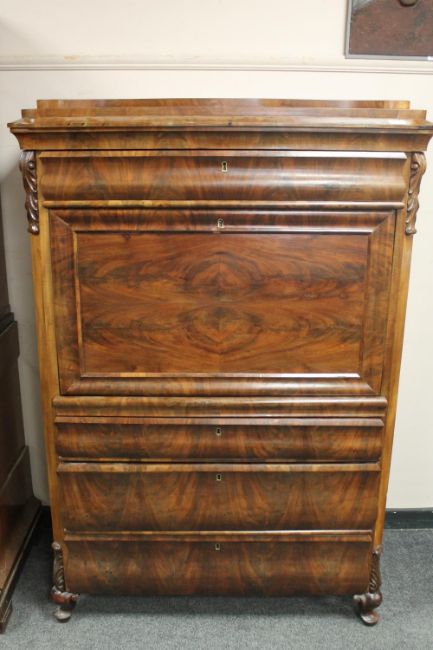 A 19th century continental mahogany secretaire cabinet, width 106cm