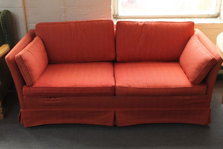 A two seater settee upholstered in red fabric