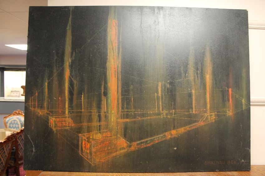 Donald James White : Birkenau BIIb, oil on board dated 1990, 111cm by 81cm
