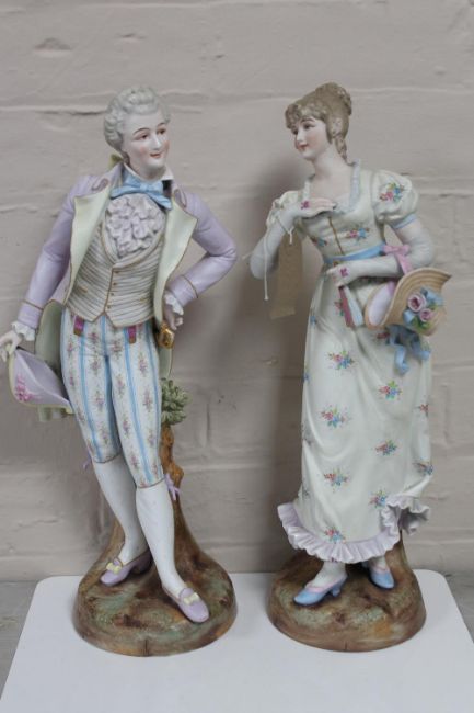 A pair of antique continental bisque figures