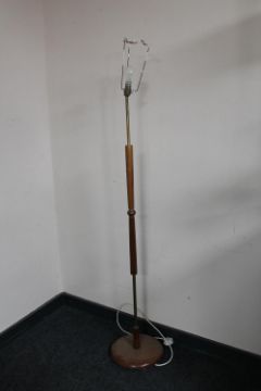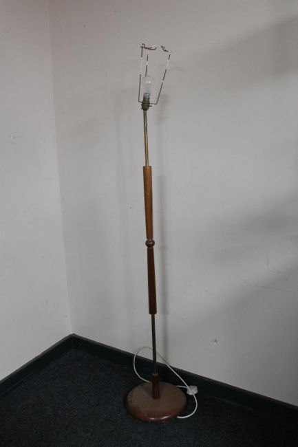 A mid 20th century teak and brass standard lamp