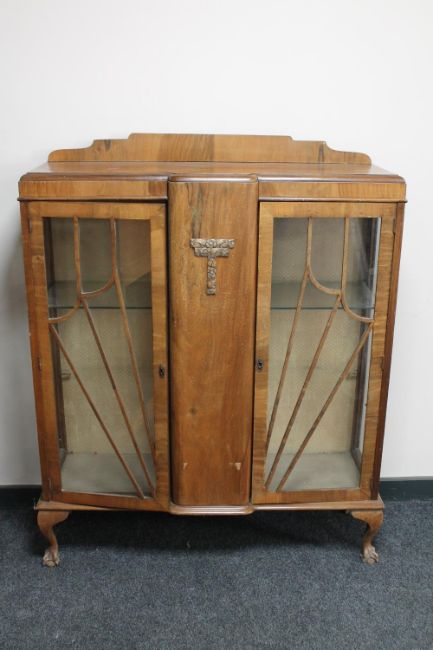 A 1930's walnut double door display cabinet