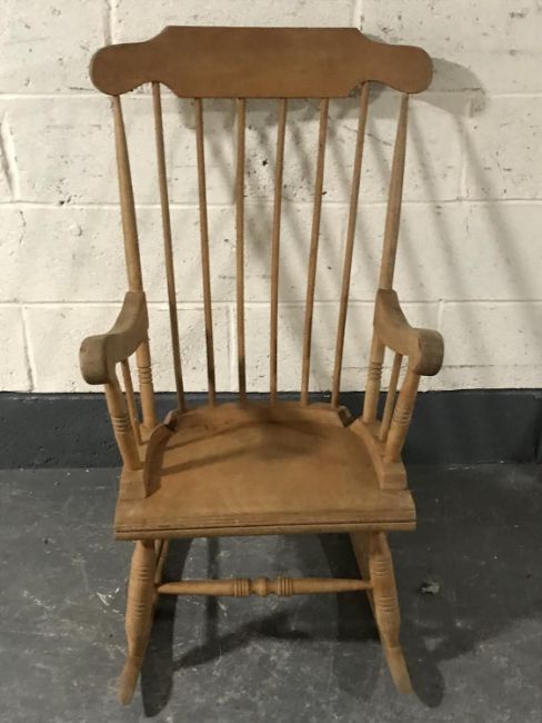 A pine spindle back rocking chair