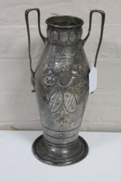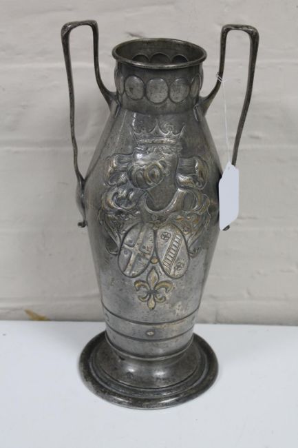 A WMF twin-handled vase decorated with an armorial