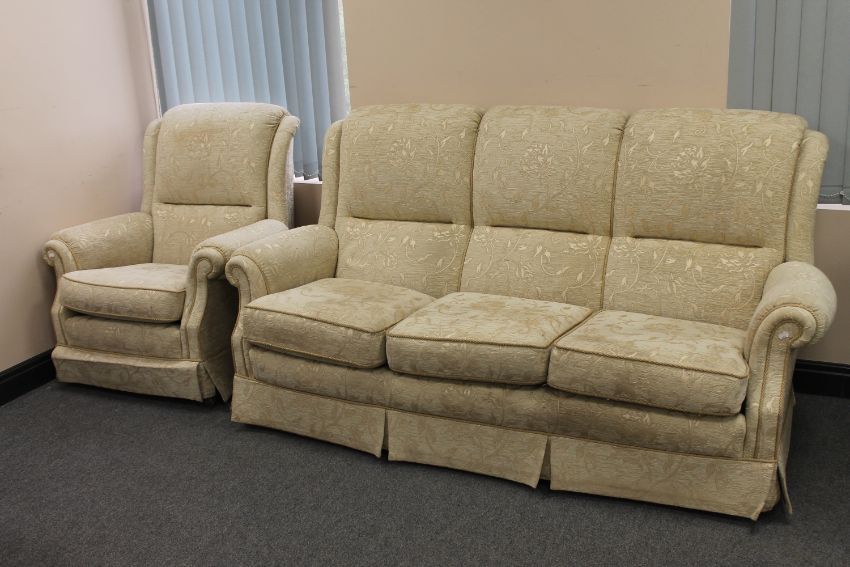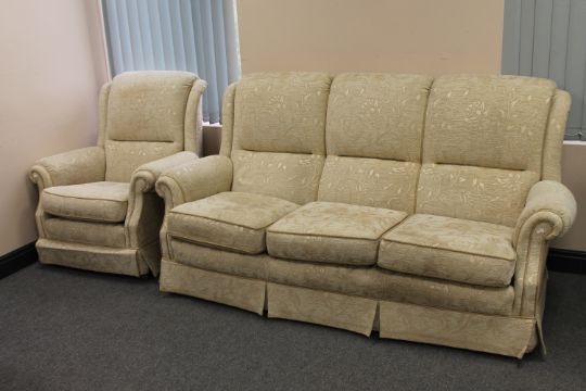 Three seater settee and armchair in cream and gold floral print