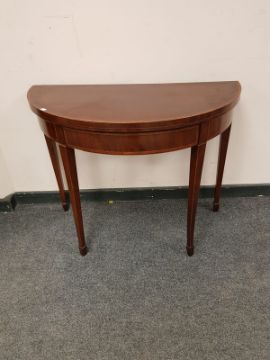 A 19th century inlaid mahogany demi-lune card table, width 91cm