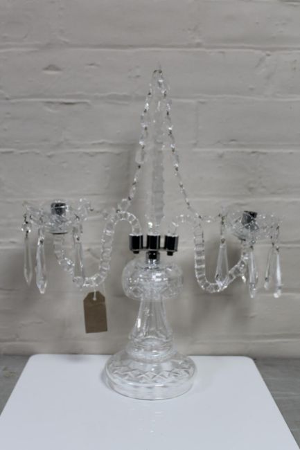 A cut glass two way table candelabra