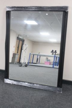 A black framed overmantel mirror