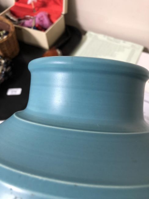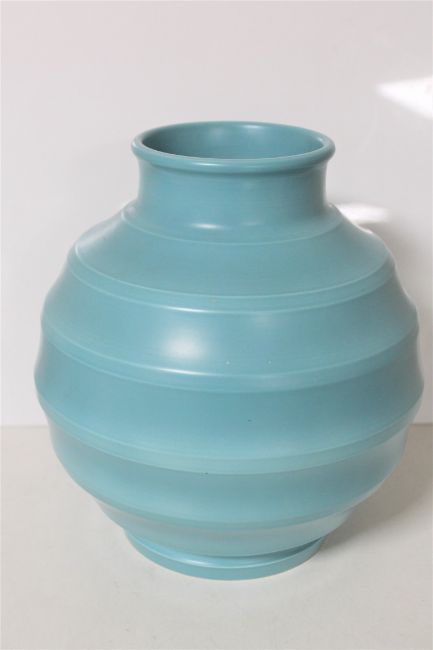 A Wedgwood Keith Murray design bulbous ribbed vase, turquoise, height 23.5 cm