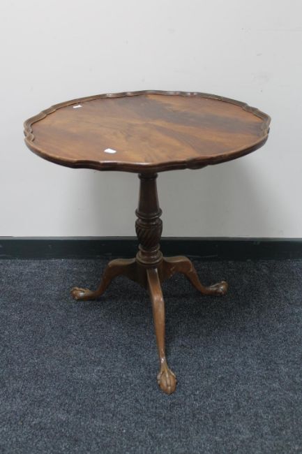 A mahogany tilt top wine table on claw and ball feet