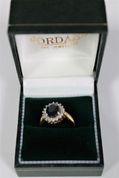 An 18ct gold diamond and sapphire cluster ring, size M