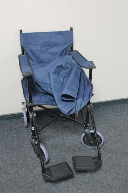 A folding light weight wheel chair in carry bag