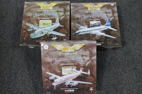 Three boxed Corgi Aviation Archive die cast aircraft models