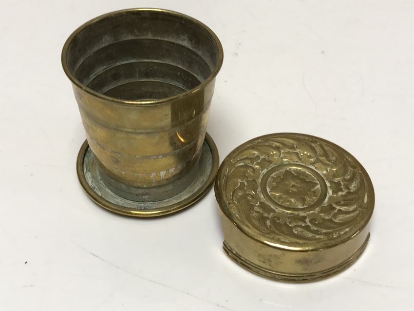 A Victorian brass telescopic stirrup cup dated 1897