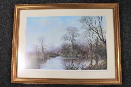 A gilt framed signed print, Blue Pond by Ceasar Smith