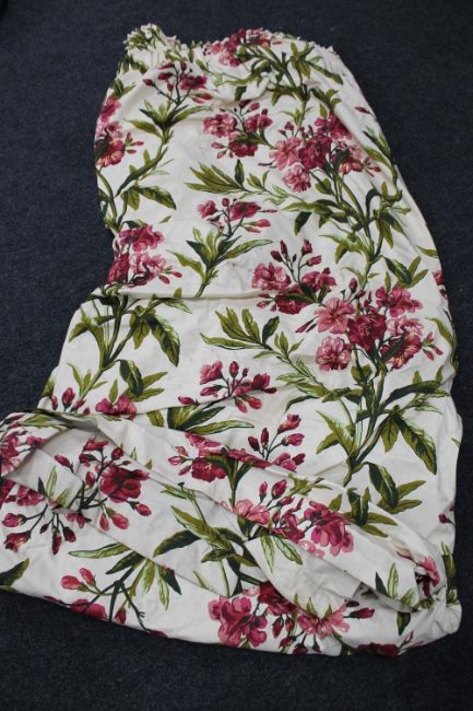 A pair of floral fully lined curtains
