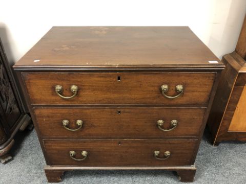 A George III mahogany three drawer chest on bracket feet, width 95 cm.