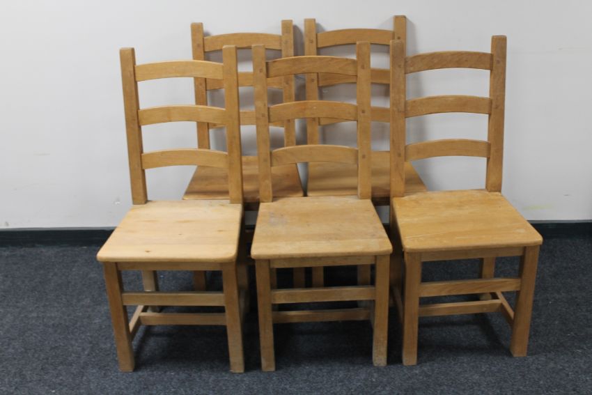 A set of five pine ladder back kitchen chairs