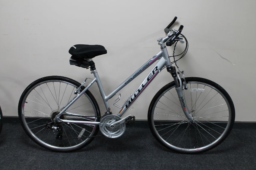 A lady's Claud Butler Explorer 200 mountain bike, with Shimano gears and shifters, comfort saddle and bag