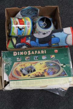 A box of Dinosafari electric train set and a box of Thomas the Tank Engine bedroom accessories