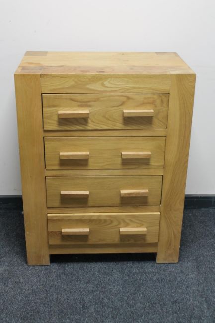 A contemporary oak four drawer chest