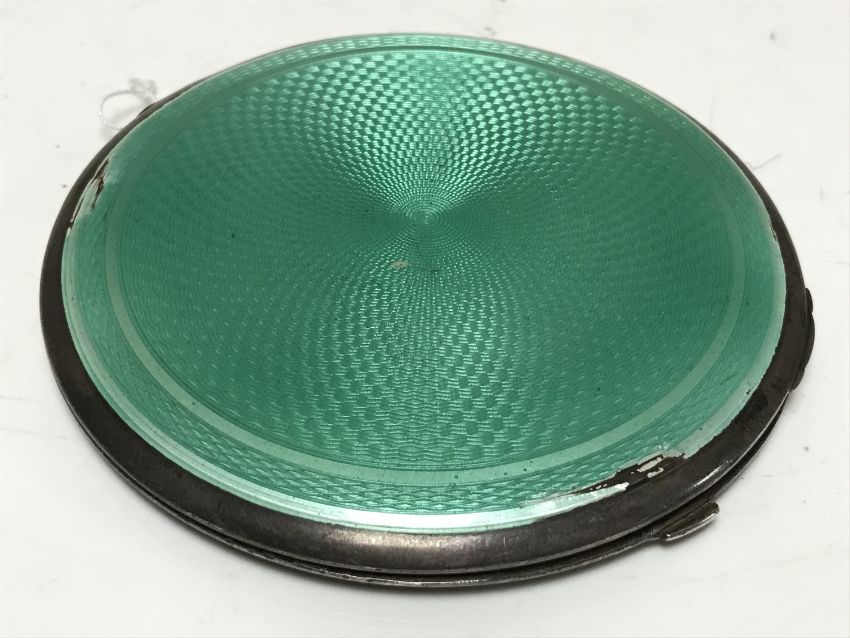 An Art Deco silver and green enamel circular powder compact, Birmingham 1932.