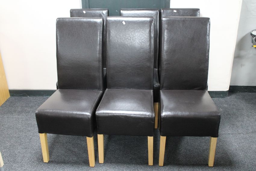 A set of six leather high back dining chairs